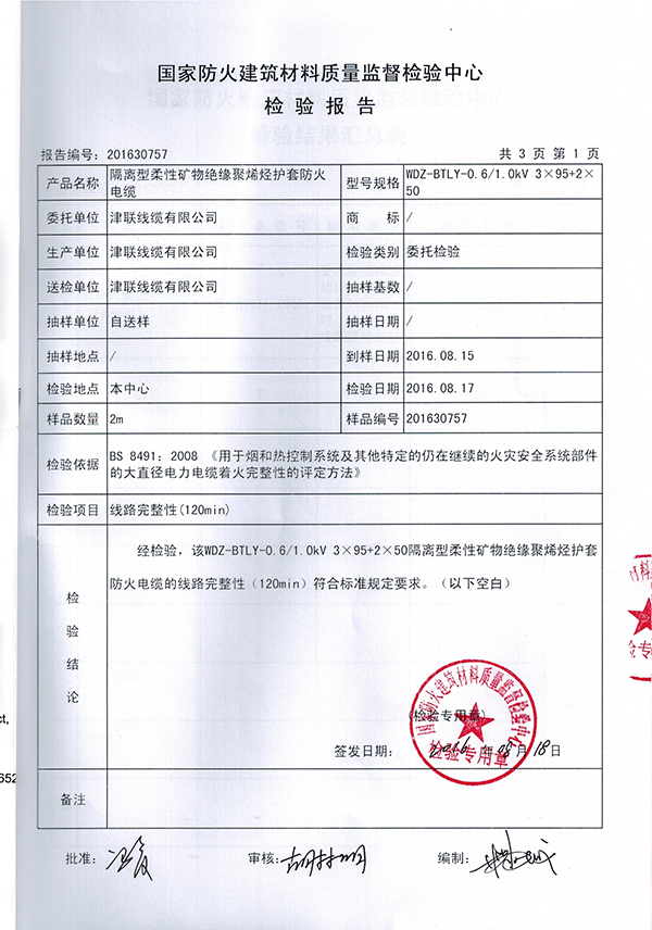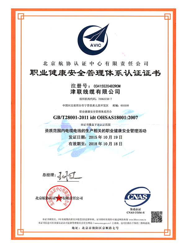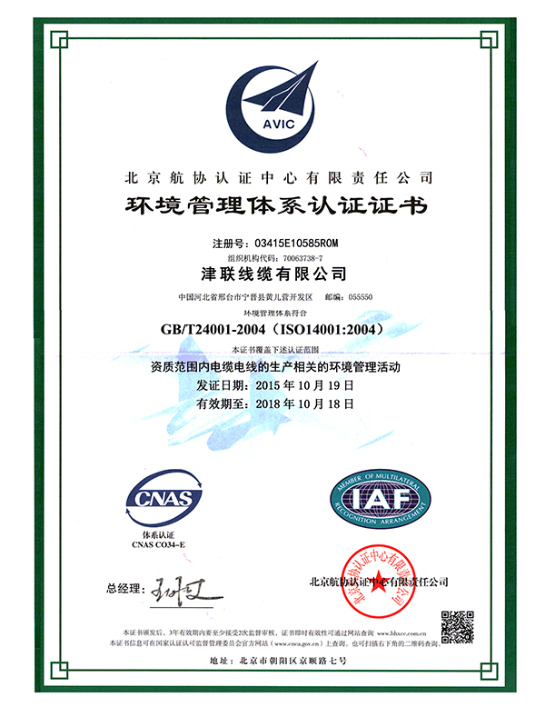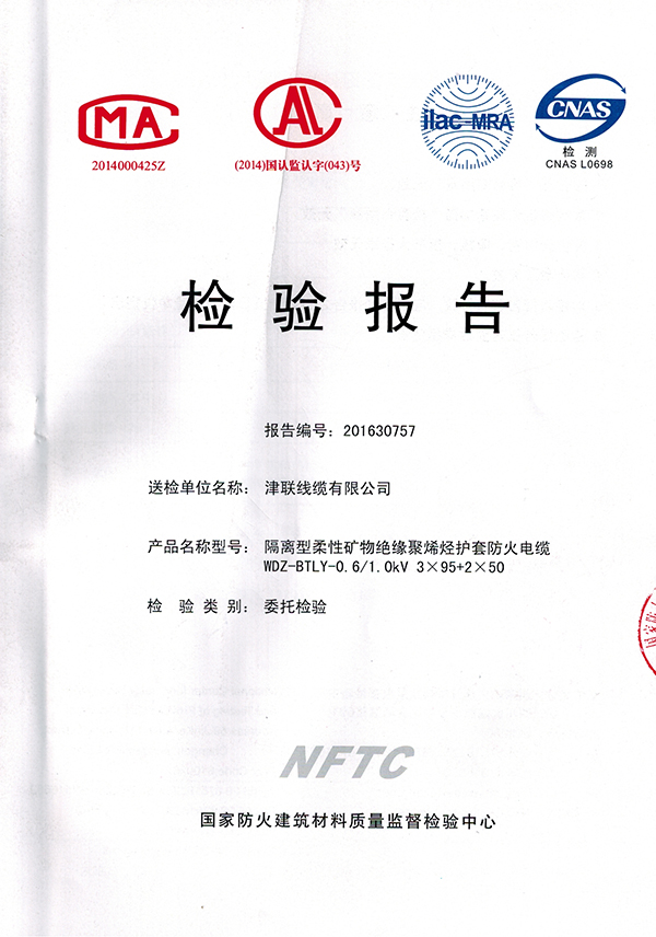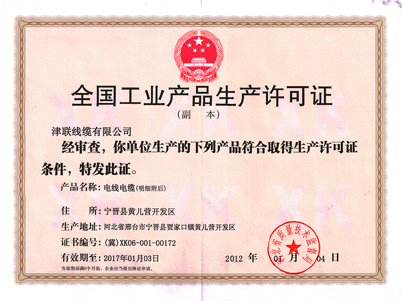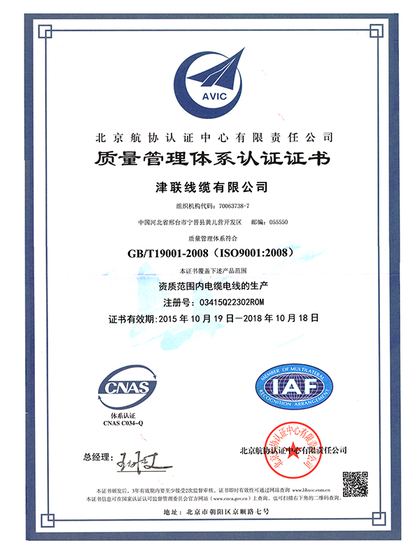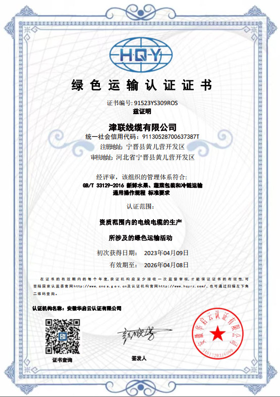 津联线缆证书
